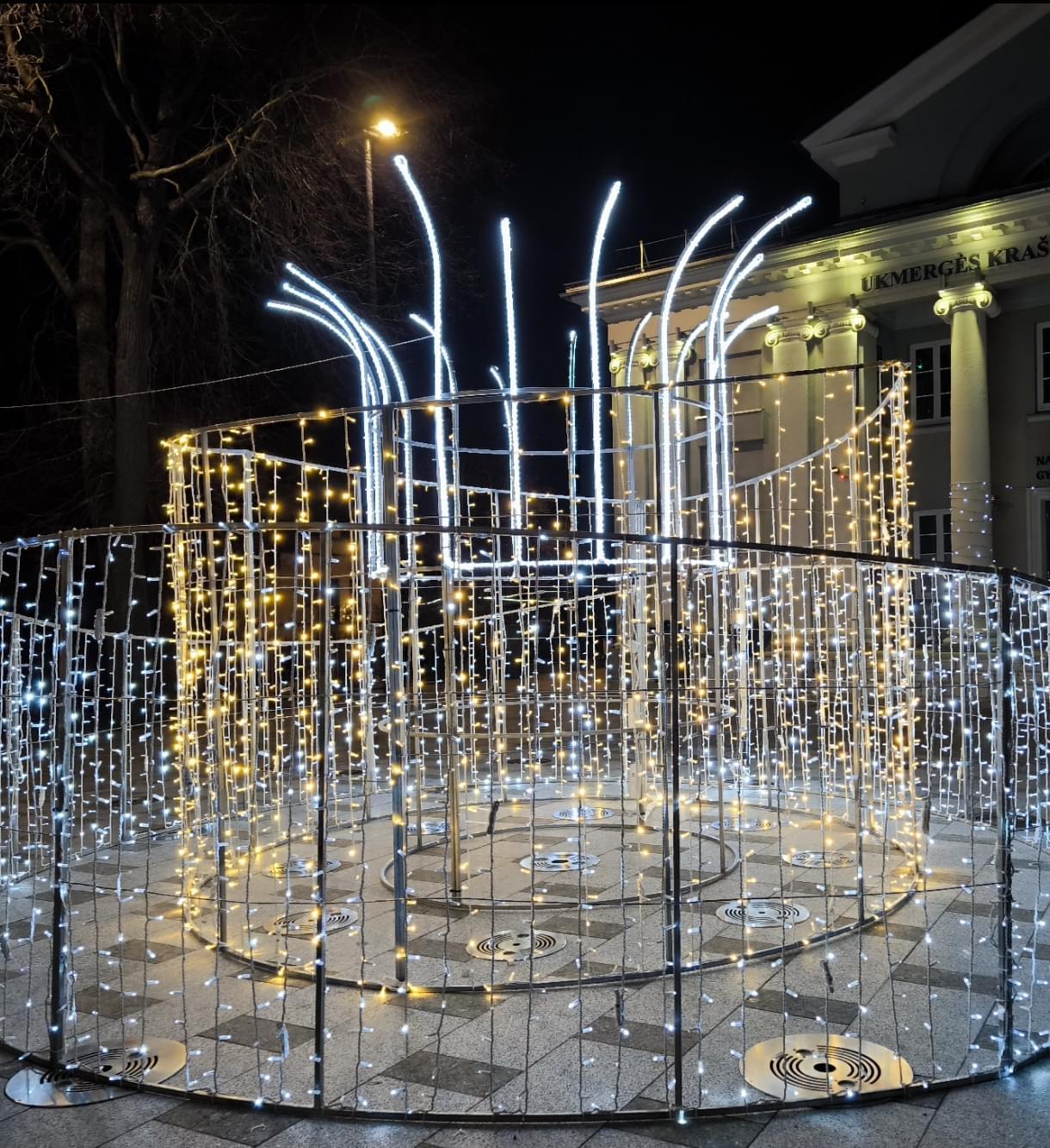 Šeštadienį sužibo pagrindinė "Kalėdų eglutė" bei kitos kalėdinės dekoracijos Ukmergėje.